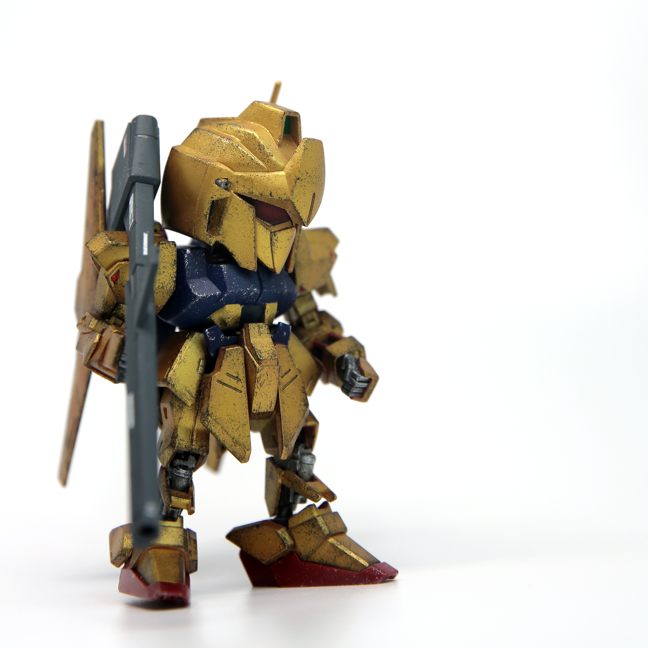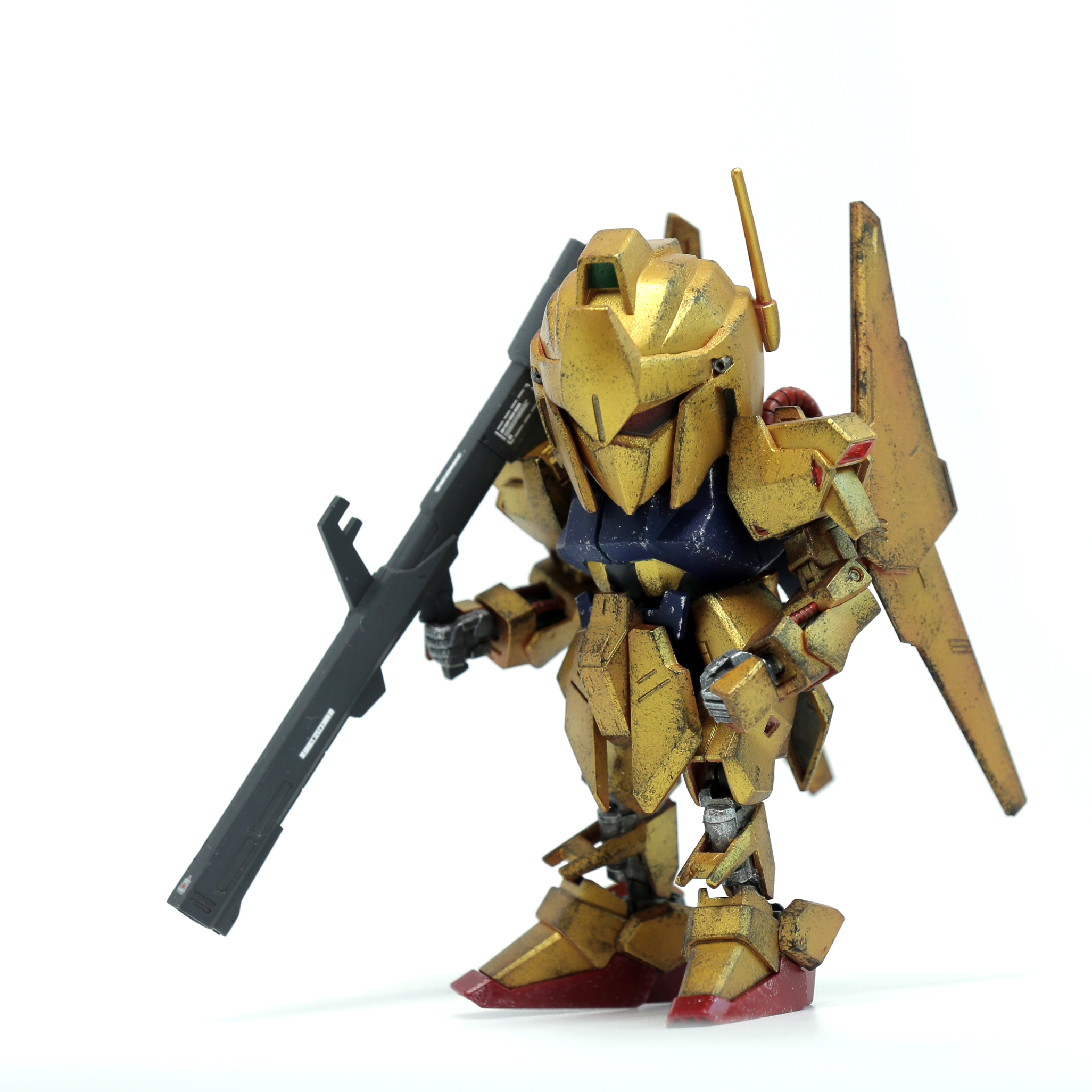 이번 작업은 건프라 등급의 믹스매치다. SD와 HG라는 서로 다른 등급을 섞었다. 다만, 두 등급을 조합하여 새로운 등급을 만든 것이 아니라 변형된 SD 라고 보는 것이 맞겠다. 실질적으로는 HG 부품을 더 많이 사용했지만 SD의 커다란 머리가 압도적이라 자연스레 '아, SD구나.'라고 생각하게 만든다.